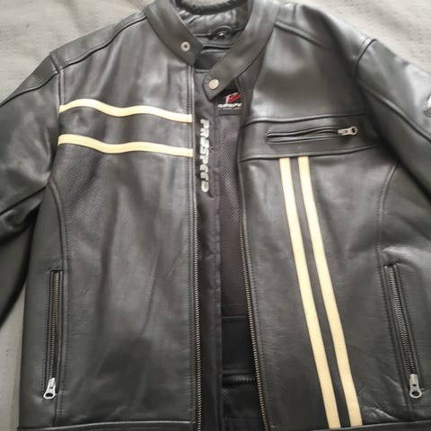 Myydään nahkainen ajotakki. Vastaa aikalailla M-kokoa.