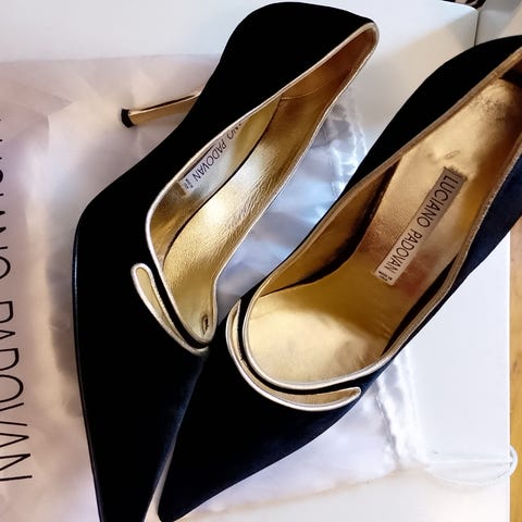 Mukavat mokkanahkaiset tanssikorkkarit. Jonkin verran kulumaa (ks. kuvat). Koko 4 1/2, sopivat omaan 37,5 jalkaan täydellisesti.