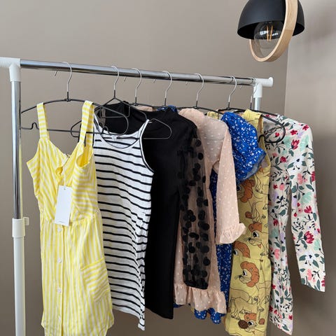 Myynnissä yhden tytön käyttämiä vaatteita.