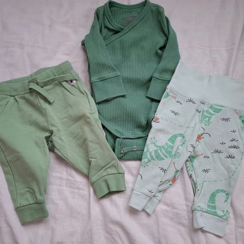 Myydään siistikuntoinen vaatesetti, johon kuuluu Muumien pyjama, 2x Lindexin tuplanepparibodya, 2x Peuhun housut, Reiman housut sekä Cirafin potkuhousut. Potkuhousuissa haitua pinnassa. Pesty hajusteettomalla.