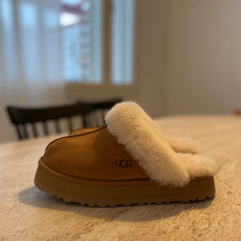 Käyttämättömät UGGin W Disquette-malliset aamutossut. Mukaan kenkälaatikko. Tossut ovat pientä kokoa, sopivat parhaiten 38-kokoiselle jalalle.