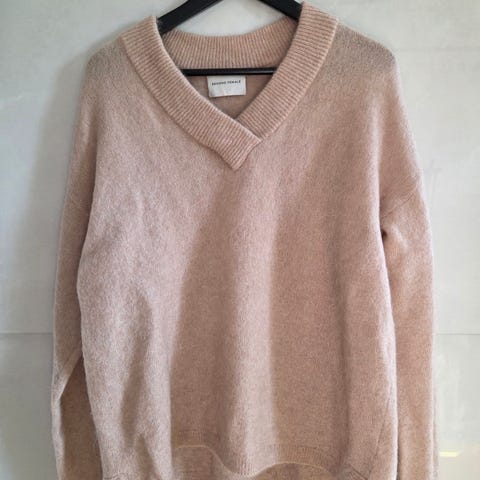 Second Female neulepusero koko M. Kaunis monivärinen pinta, jossa sekoittuu useita maanläheisiä sävyjä. Materiaalina mohairvillasekoite (pääosin mohairia ja villaa, mukana myös tekokuituja. Malli on pitkähihainen, pyöreäkauluksinen ja joustinneulosta.