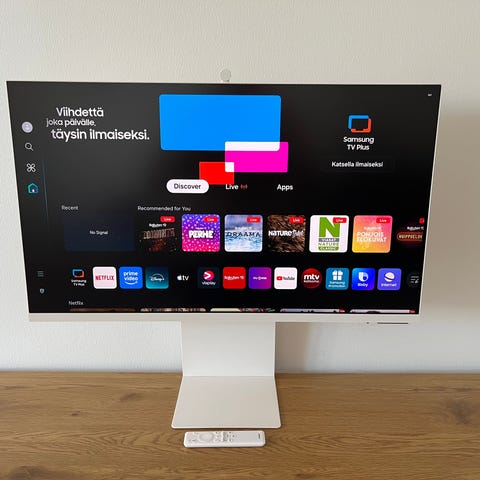 32 tuuman 4K älynäyttö jossa on TV ominaisuudet myös. Käytetty ulkoisena monitorina.