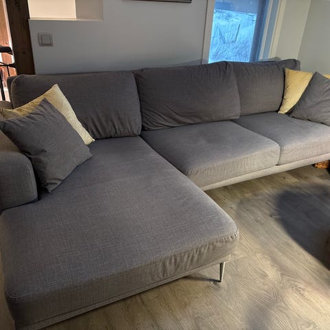 Upea sohva seuraavalle! Harmaa väritys, kaksi divaaniosuutta. Irrotettavat päälikankaat. Tarjoa ja kysy rohkeasti. Saa kolmeen osaan kuljetukseen.