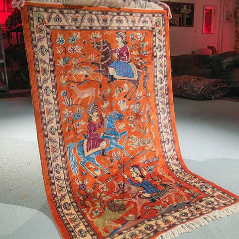 käsinsolmittu itämainen aitomatto villamatto vintage persialainen aito villa ghom vaalea valkoinen punainen sininen pieni matto käsinkudottu käsin käsintehty käsityö antiikkimatto vintagematto helsinki helsingissä