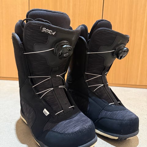 Burton Progression Boa -lumilautakengät naisille. Kengän koko on EU 39 (US 7,5 / UK 5,5 / JPN 245). Väri on musta, yksityiskohdissa on sinistä. Kiristysjärjestelmänä on Boa, joka mahdollistaa nauhojen säätämisen rullaa kiertämällä. Kengissä on pehmustettu varsi ja sisäkenkä, jotka tukevat jalkaa lumilautailussa rinteessä ja parkissa.
