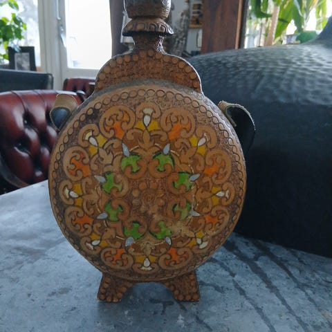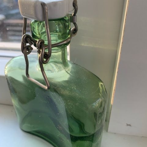 Kirkas vanha pullo. Pullon korkeus 50cm ja leveys 20cm. Pullon on hyvässä kunnossa, mutta likanen.