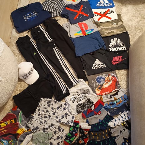 Adidasta,levistä ja vansia. Jotain ns merkitöntäkin. T-paidat hyvässä kunnossa. Levi's paita värjäytyny hieman eli ei priimaa. Addun paidassa joku jälki, en oo koittanut poistaa. Housut ei priimaa.