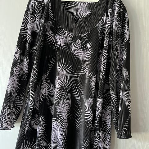 kokomerkintä puuttuu, koko noin 40, mitat pituus 73cm, leveys kainalon alta 55cm, hihan sisäpituus 28cm, hiha on 3/4 osa hiha, hiha leveähkö jossa 6cm halkio, mahd postikulut ostajalle
