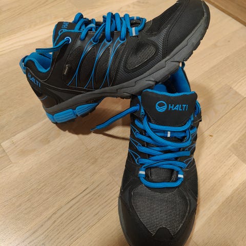 Myydään hyväkuntoiset mustat heijastimilla varustetut Halti softshell ulkoilukengät koossa 38.
