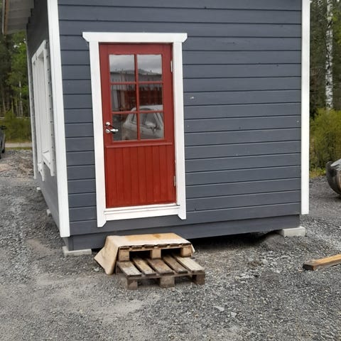 Käyttövalmis saunarakennus.