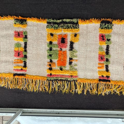 Vanha seinävaate, korkeus 65cm + hapsut ja leveys 130cm. Nouto. Maksu käteinen tai Mobile Pay.