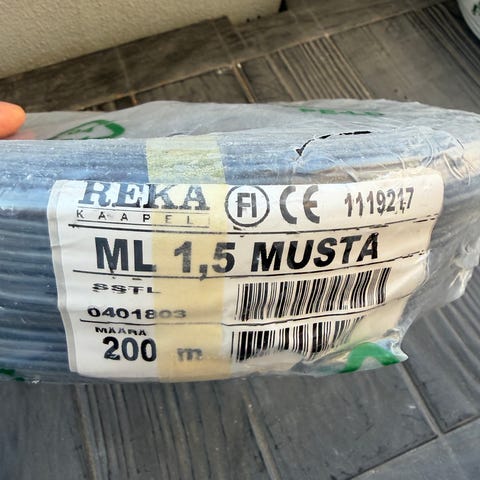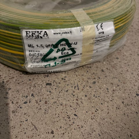 Myydään remontin jäljiltä REKA MMJ 3×2,5 mm² sähkökaapelia. Kaapelia jäljellä noin 17 metriä. Nimellisjännite 300/500 V, valkoinen vaippa. Valmistettu Suomessa. Kaapelia on leikattu ja päät on katkaistu päädystä. Muuten käyttämätöntä ja siisti. Sopii esim. remontti- ja asennustöihin, jatkoihin tai varastokaapeliksi.