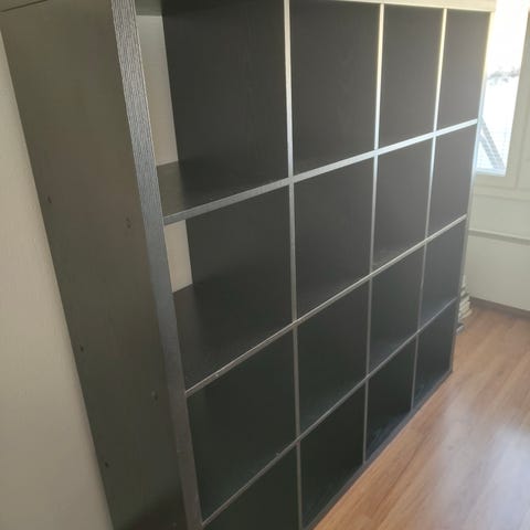 Kaunis lokerohylly, sävy tammi, kiinnitys seinään esim. kahdella kulmaraudalla. Voi kääntää myös pystyyn.