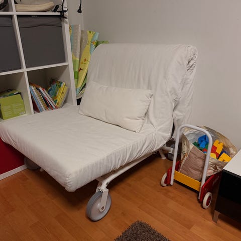 Siistikuntoinen ja lähes käyttämätön IKEA:n 1-istuttava vuodetuoli. Ollut käytössä vain kerran, muuten jäänyt tarpeettomaksi.