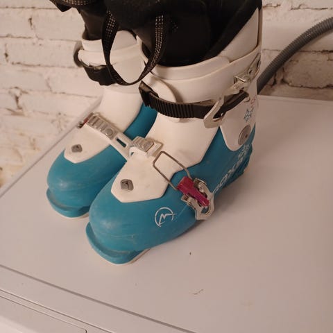Toimivat lasketteluvälineet valmiina käyttöön. Suksissa kantit kunnossa, eikä muutenkaan mitään ole rikki, ainoastaan normaalia käytönjälkeä. Monot myös täysin kunnossa, mutta jonkin verran pinttynyttä likaa pinnassa. Monojen sisämitta 20.5cm ja ulkomitta 249mm.