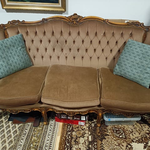 Myydään elämää nähnyt, mutta hyvässä kunnossa ja täysin ehjä sohva.
