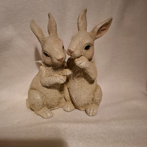 Clayre and eef merkkiä, 15e kappale. Pupu kellolla korkeus 14cm ja Pupu leivoksilla 13cm korkea. (Rekvisiitta ei myynnissä)Nouto tai postitus.