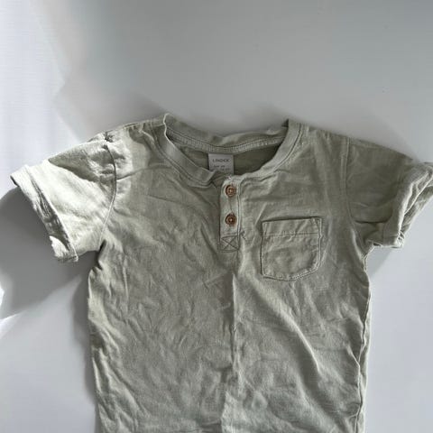 Vihertävä paita, jossa jotain haaleita tahroja joita en ole koittanut poistaa. Siisti kuitenkin.