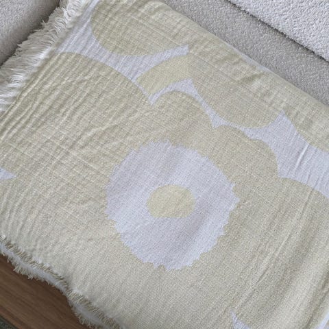 Marimekon Unikko päiväpeitto. Valkoinen ja harmaa. Todella hyvässä kunnossa ja pidetty hyvin huolta, joten on melkein kuin uusi!