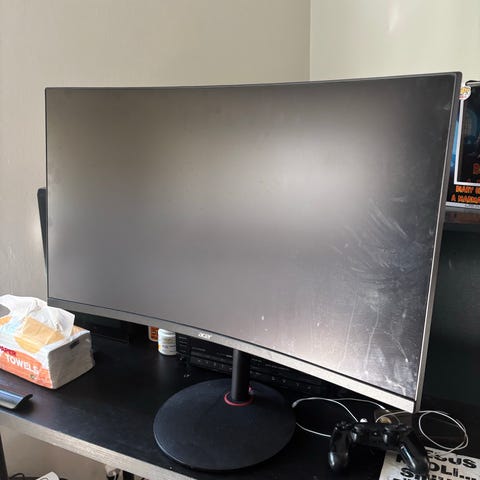 Näytössä on kaareva paneeli ja ohut reunus. Liitännöistä löytyy vähintään kaksi HDMI-porttia (HDMI 1 ja HDMI 2) sekä DisplayPort (DP). Näytössä on keskijalalla varustettu tukeva V-muotoinen jalusta.