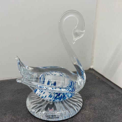 Myydään kuvien mukainen Muurlan lasilintu. Sinistä ja kirkasta lasia, sekä kullan värisiä yksityiskohtia. Hyvässä kunnossa ja ehjä. Nouto Ylämyllyjärveltä tai postitus ToriDiilillä. Minulla on myynnissä muutakin koristelasia.