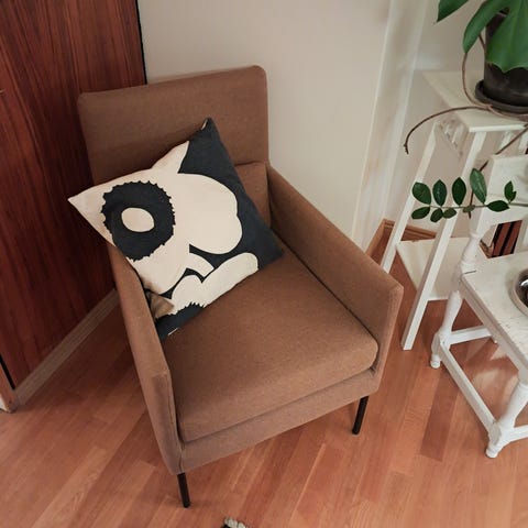 Aivan ihanan pehmeä löhötuoli tilattu Homeroomista 3 vuotta sitten. Istuinosa uudesta toki hieman menettänyt kirkkauttaan.