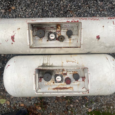 Laka kattila. Vedet olleet sisällä siihen asti että tuotu ulos pannuhuoneesta äskettäin. Päävesiyhteet katkaistu, uudet yhteet pitää hitsata paikoilleen jos meinaa käyttöön.
