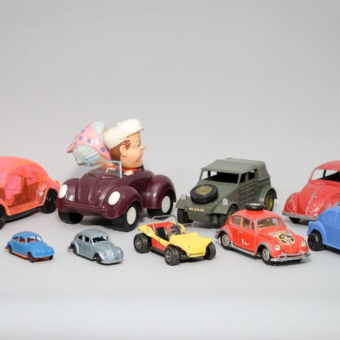 Volkswagen 1302 poliisiauto pienoismalli. Valkoinen kuplavolkkari, jossa siniset raidat ja poliisimerkinnät kyljissä sekä kattovalo. Auto on kiinnitetty mustalle jalustalle, jossa mallimerkintä "Volkswagen 1302". Mukana myös toinen, kuluneempi poliisiauto-pienoismalli samaa tyyppiä. Sopii esimerkiksi kokoelmiin tai koristekäyttöön.