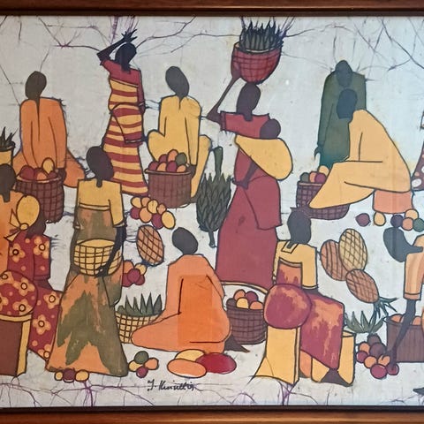 Kaunis batiikki taulu, puu kehyksissä. Koko korkeus 92cm , leveys 72cm