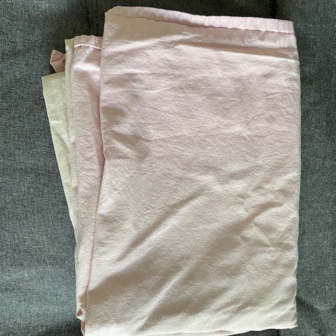Myynnissä 6 kpl yhden hengen aluslakanaoita. 4 valkoista ja 2 vihreää. Savuton ja eläintalous (=löytyy mahdollisesti eläimen karvoja). MMM.
