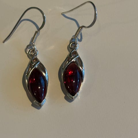925 hopea ja aidot upeat granaatit! Voin myydä korvisten kanssa settinä 50€.
