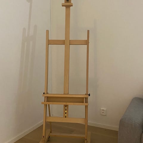 Kokoon menevä taiteilijajakkara (maalausjakkara, retkijakkara). Puinen nahkaisella istuimella. Kunto käytetty. Ota mukaan ulkona maalausretkelle tai vaikka kuvaus retkelle. Mitat auki: korkeus n 50cm, istuimen sivu n 33cm. Painoraja valmistajalla 90kg. Tahra yhdessä jalassa kuva 5