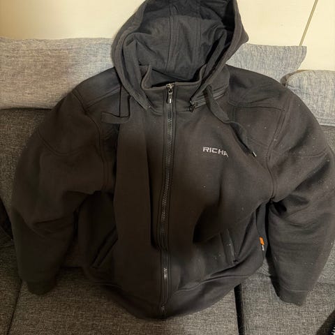 Macna hupparitakki, koko XL. Väri harmaa. Edessä vetoketju ja kaksi taskua, säädettävät hihansuut sekä huppu. Materiaalina joustava ja pehmeä kangas, sisäpuolella verkkovuori.