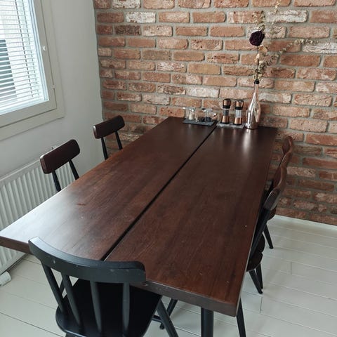 Hakusanat: musta, huonekalu, huonekalut, tapiovaara, design huonekalut, Tuoli, Valmistaja, design, pohjoismainen minimalismi, suomalainen, käytetyt huonekalut, tuolit, laukaan puu, puu, puinen, pöytä, pöydät, ruokapöytä, ruokatuoli, ruskea