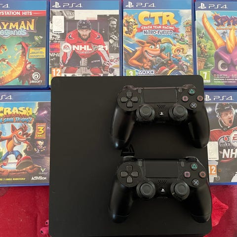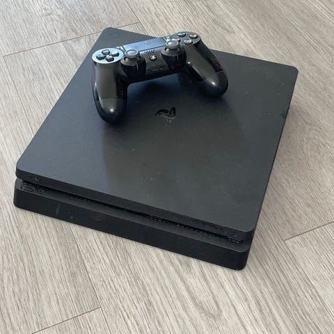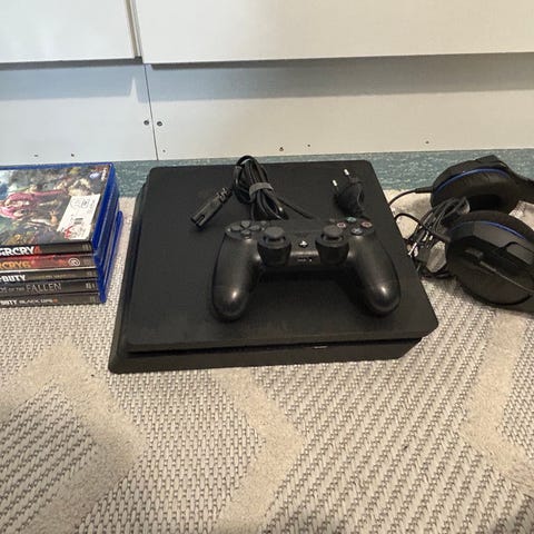 Vähän käytetty Sony PlayStation 4 Slim pelikonsoli 500 GB, väri musta. Pakettiin kuuluu PS4 Slim -konsoli, yksi langaton DualShock 4 -ohjain, virtajohto, USB-latausjohto ohjaimelle, kuulokemikrofoni sekä käyttöohjeet. Mukana lisäksi kaksi PS4-peliä: LEGO Star Wars: The Force Awakens ja LEGO Marvel’s Avengers.