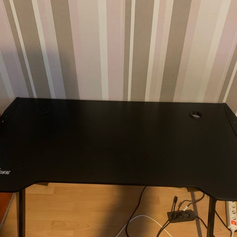 Musta peli-/työpöytä. Kuvaa ei valitettavasti muistettu ottaa kasattuna. Mitat: pöytälevy 160cm x 80cm, jalkojen leveys 70cm, pöydän korkeus 70cm. Ollut pelipöytänä käytössä (useampi näyttö, PC tms. pöydällä eli kantaa painavaakin tavaraa), ei takeita etteikö pieniä käytön jälkiä löytyisi. Mukana pöytämatto, missä kylläkin käytönjälkiä havaittavissa, voi toki käyttää ilman sitä. Nouto Viikistä/Latokartanosta. Maksu käteisellä/mobilepaylla.