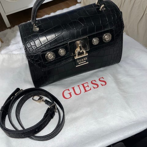 Guess käsilaukku naisille. Materiaalina tekonahka, väri musta. Mukana myös pidempi olka hihina. Mahdolliset pk:t ostajalle.