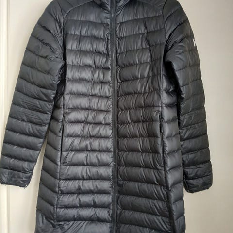 Helly Hansen naisten talvitakki kokoa S. Väri valkoinen. Materiaalina pääosin polyesteri. Pitkä, toppamallinen takki, jossa vaakasuuntaiset tikkaukset. Takissa on huppu ja etupuolella täyspitkä vetoketju sekä painonapit tuulensuojalistassa. Sopii kylmään säähän ulkoiluun ja arkeen. Pituus olkapää-helma 85 cm, kainalo-kainalo 45 cm, hiha 60 cm.