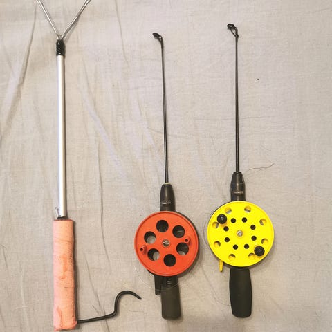 Joku itse tehnyt joskus. Varsi alumiinia, kahva toisessa foamia ja toisessa korkki tms ja pätkä foamia. Epoksilla ja Perhonsidonta langalla kasattu. Koukut suojattu kutistesukalla.