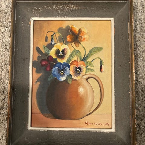 Kyseessä on Ernst Wendelin/Axel Fahlgren tyylinen öljymaalaus. Säilytetty verkkokellarissa viim. 25 vuotta, joten kankaassa rypistymistä ja kehyksissä kulumaa. Mitat 148 x 97 cm kehysten kanssa, pelkkä maalaus 125 x 75 cm. En osaa arvioida hintaa, tarjoa.