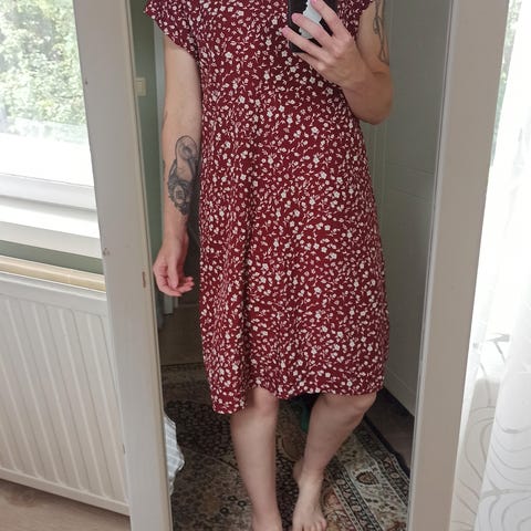 Hyväkuntoinen, jonkin verran pintanukkaantunut mekko/tunika. Tuntuu ihanalta ja kevyeltä päällä. Joustava. Sopii mulle, vaikka olen XL.