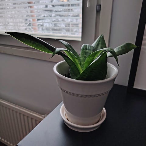 Aasin/muulin korva -niminen kukka. Pienikokoinen viherkasvi muoviruukussa.
