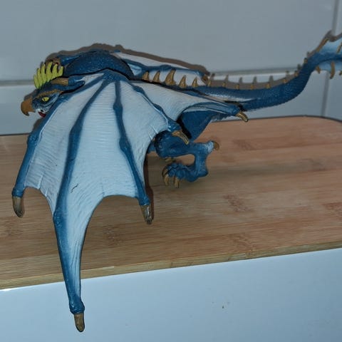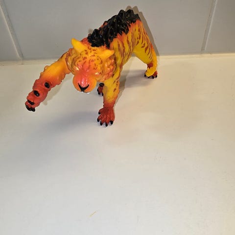 Schleichin punainen Eldrador creatures Laavalohikäärme. Irroitettavat siivet. Ostettu Vintedistä, mutta lelussa on joku hajusteen haju, josta oma hajusteherkkä/hajusteallerginen nenä ei tykkää, joten menee uudelleen myyntiin halvemmalla.