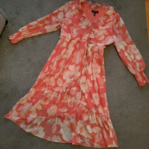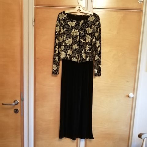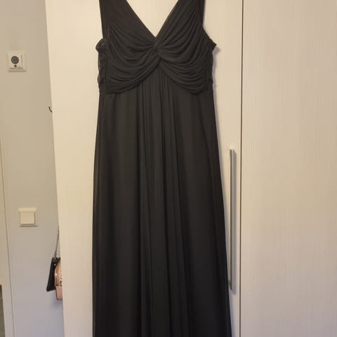 Rypistymätön nilkkapituinen mekko vyöllä. Yläosa paljettikoristeltu. Huom bolero ei kuulu hintaan vaan myynnissä erikseen. Vyötärö 90, niskapituus 152