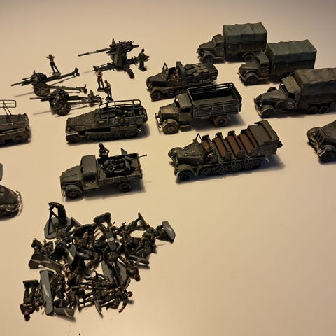 Myydään otsikon mukaisesti 1/72-mittakaavan maalattuja ja merkitettyjä muovisotilaita (n. 15 kpl) sekä kalustoa (14 kpl). Nouto ja käteinen/mobilepay.