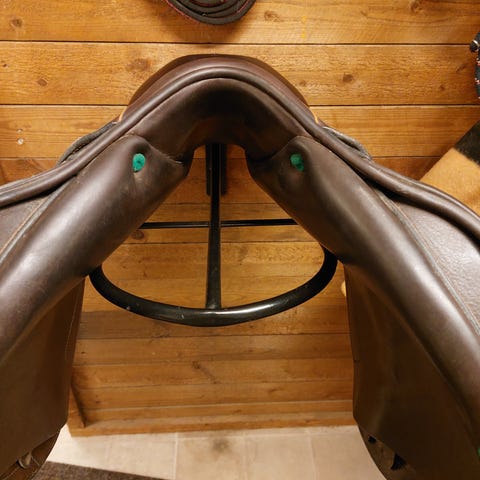 Hyväkuntoinen satula hieman taaksenousevasn selkään