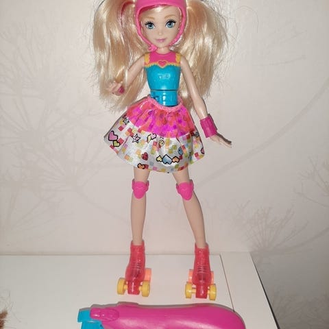 Myydään Kauko-ohjattava rullaluistelijatyttö Rainbow Riley, joka osaa tehdä hienoja temppuja.