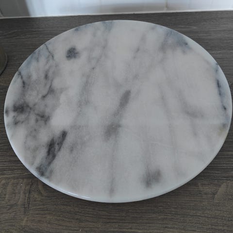 Tukeva pyörivä marmorinen juustotarjotin. Mitat 30,5 x 3 cm. Nouto. Maksu käteinen.