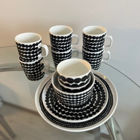 Kuin uusi Marimekko räsymatto-astiasto. Hp. yhteensä 60€.
